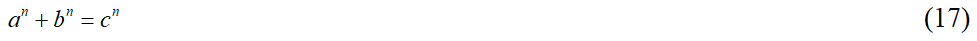Т.е. уравнение (17) может иметь целочисленные решения только при n < 6. А для случаев n = 3, n = 4 и n = 5 Великая теорема Ферма была доказана уже достаточно давно.