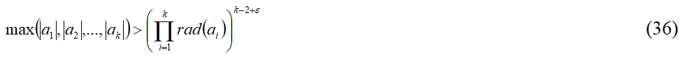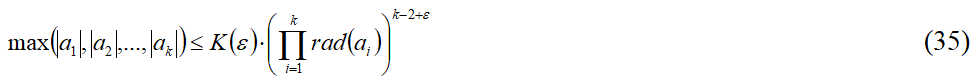 Формулировка 5. Для любого ε > 0 существует только конечное число взаимно простых ненулевых целых чисел a1, a2, …, ak, удовлетворяющих несоставному уравнению (34), для которых выполняется неравенство: