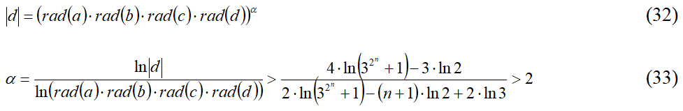 Таким образом, заменив произведение радикалов на радикал произведения в неравенствах (35), (36) и (37), можно дать еще такие формулировки abcd-гипотезы.