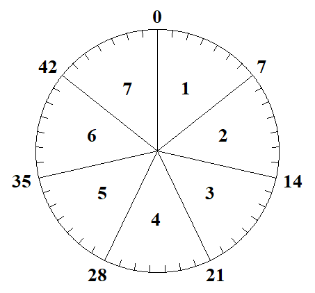 Рис. 6. Часовой циферблат при семеричном измерении времени.
