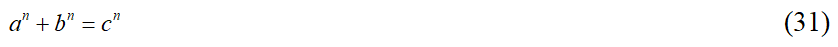 и при равных показателях x = y = z = n уравнение (30) – уравнение гипотезы Била – станет уравнением Великой теоремы Ферма: