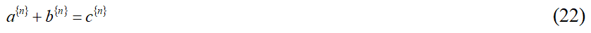 Из формулы (14) вытекает, что уравнение Великой теоремы Ферма можно записать в таком виде: