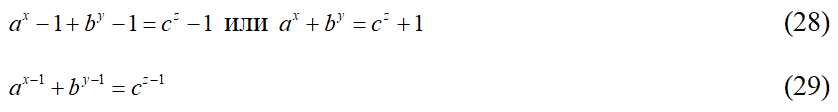 В этих уравнениях x, y, z > 3. Естественно уравнение (29), если условиться, что x, y, z > 2, при желании можно записать и в классическом виде: