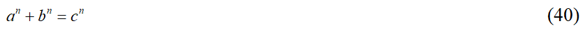 Если в уравнении (30) – первая часть теоремы – будут стоять одинаковые показатели степеней, то максимальная степень, при которой будут целочисленные решения этого уравнения, равна 2: