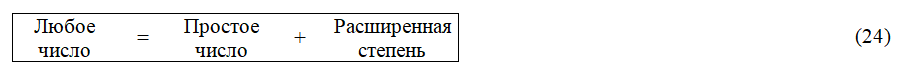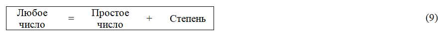 Как видно из приведенных выше уравнений, разбиение на простое число и степень подходит для любого числа, и для обычного, и для простого, и для степени. Поэтому можно записать общее уравнение такого разбиения: