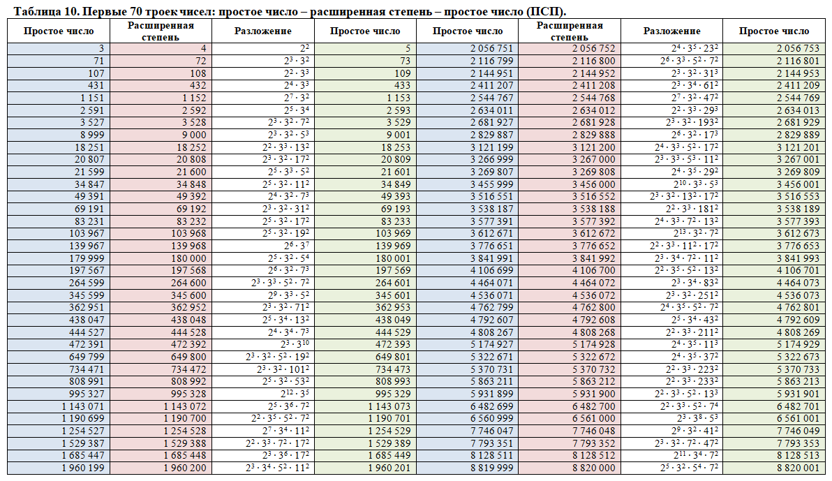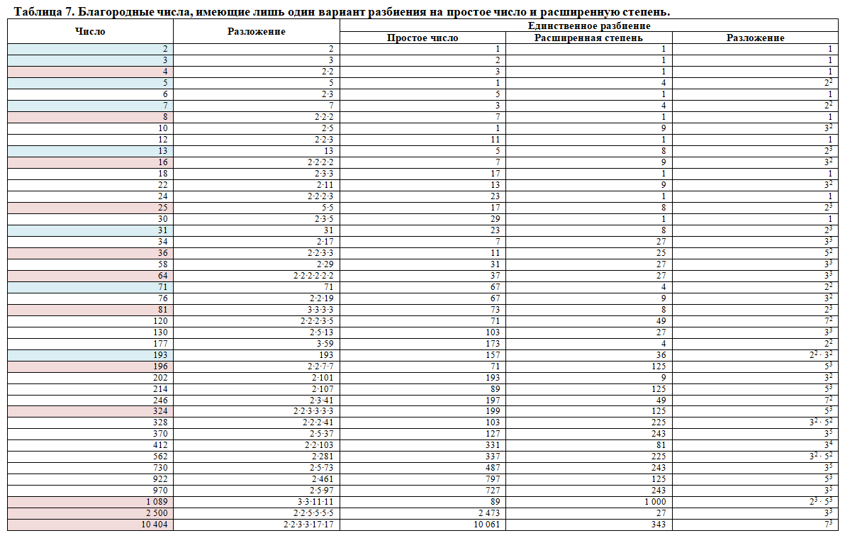 Как видно из таблицы, последним таким благородным числом является число 10 404. Голубым цветом здесь выделены простые числа, а розовым – степени.