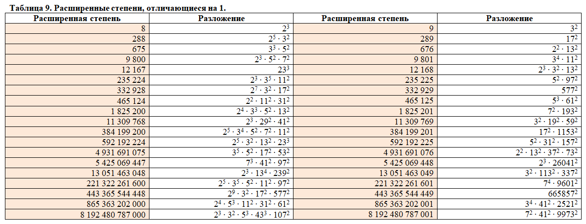 Гипотеза о двух расширенных степенях-сестрах. Существует бесконечное количество расширенных степеней, отличающихся между собой на 1.