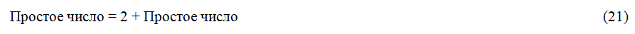 По сути, это гипотеза о двух простых числах-близнецах, поскольку уравнение (20) имеет решение, только если одно из двух простых чисел, стоящих в правой части уравнения, будет равно 2: