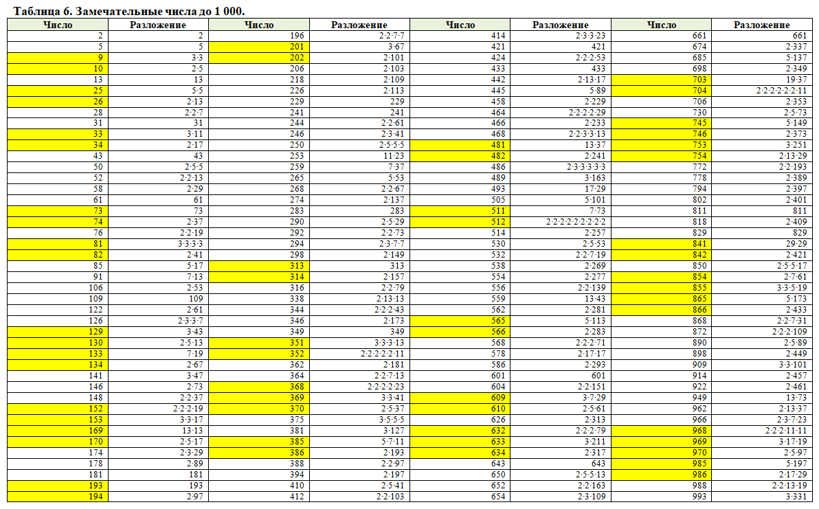 9. Дано определение замечательных чисел и приведен в таблице их список до 1 000.