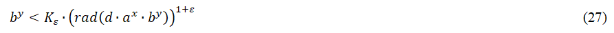 Согласно abc-гипотезе для любого сколь угодно малого ε существует константа (обозначим ее Kε) такая, что выполняется следующее неравенство: