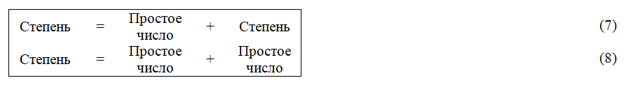 Т.е. любое простое число можно разложить на простое число и степень ИЛИ на две степени.
