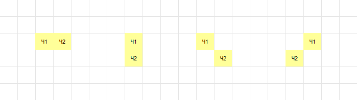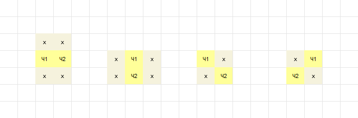 Рис. 2. Варианты помещения нового числа рядом с уже имеющимися на игровом поле двумя рядом расположенными числами.