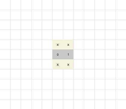 Например, вначале игры игрок имеет право по уравнению вида (1) 0 + 1 = 1 поместить новое число 1 на игровое поле только согласно следующим четырём вариантам (отмечены крестиком):