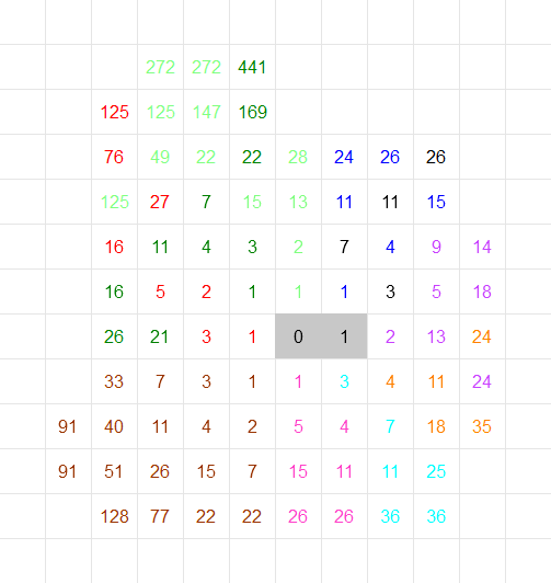 В данной игре больше поставить чисел нет возможности ни у кого. И побеждает в игре «тёмно-зелёный» игрок, поскольку он смог поместить на игровое поле максимальное число 441. Второе место занимает «светло-зелёный» игрок, поместивший на игровое поле максимальное число 272. Третье место занимает «коричневый» игрок, поместивший на игровое поле максимальное число 128.